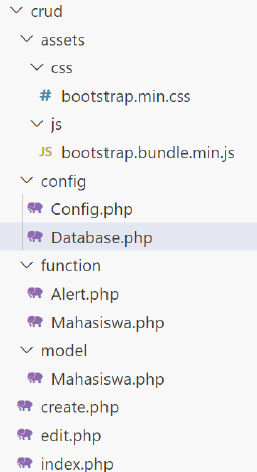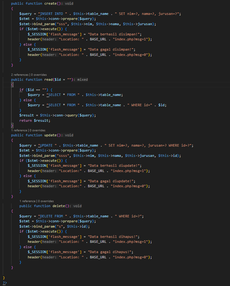 C.Terakhir kita akan membuat fungsi operasi Create, Read, Update dan Delete data Mahasiswa seperti gambar dibawah.